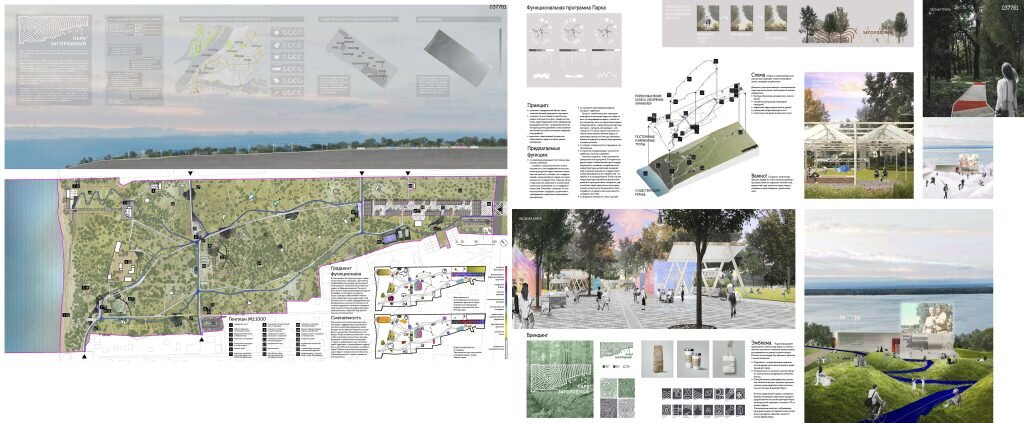 У авторов этой работы были большие планы на развитие инфраструктуры парка. В их представлении Загородный смог бы сочетать архитектурные строения разных эпох как, например, деревянную дачу XIX века и современные спортивные площадки. А аттракционы соседствовали бы с павильонами для медитации. Бюст Пушкина, велосипедные дорожки, музеи и фонтаны — кажется, архитекторы смогли уместить в Загородном все, чем бы только мог увлечься посетитель.