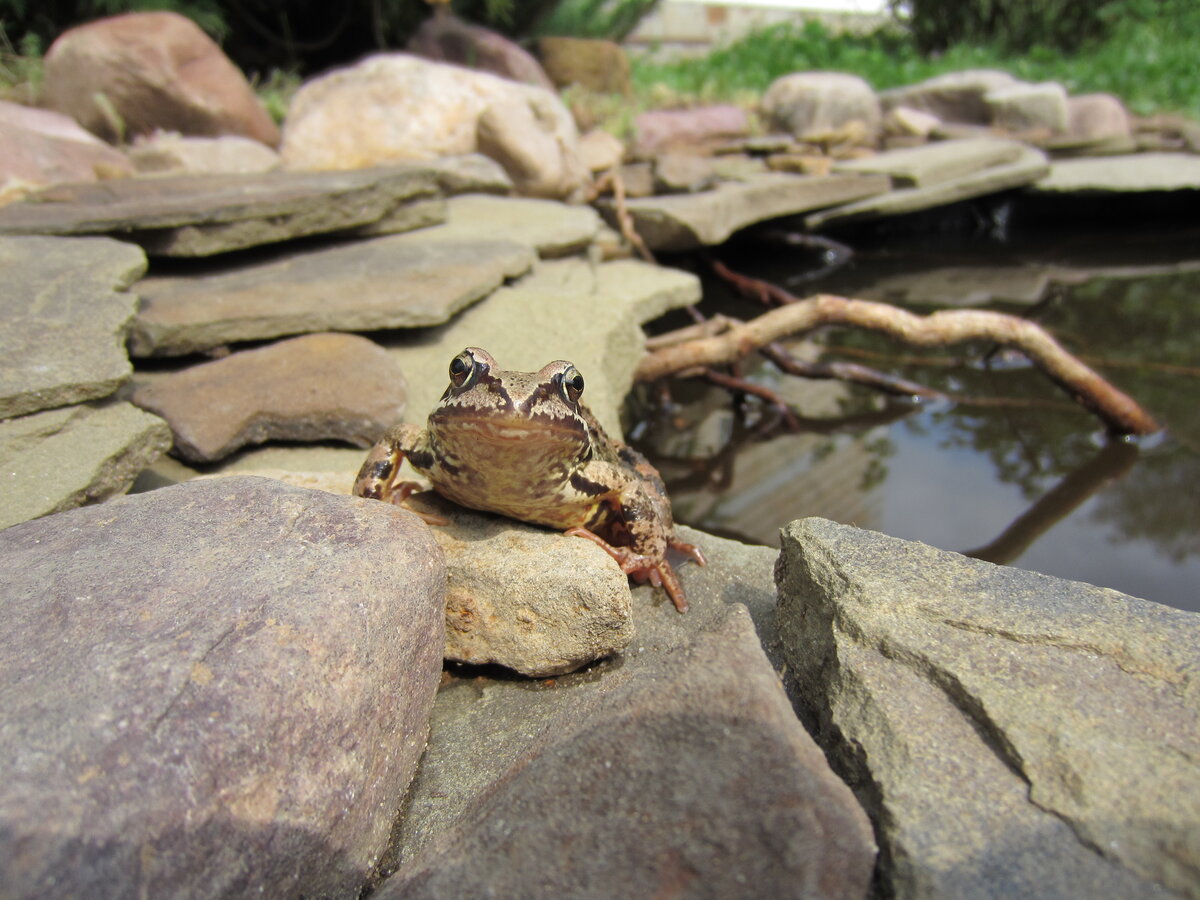 Есть на нашей даче прудик. Самый обычный, маленький, сделан из старой шины лет 6–7 назад. Говорят, что симпатичный. Не знаю, видела и получше, но, похоже, его обитателям этот водоёмчик приглянулся. Чем больше зарастал пруд и чем реже я полола вокруг, тем обитателей было больше. И какие!... Первый житель появился там чуть ли не в тот же день, как мы заполнили наш водный оазис водой. Полола я неподалёку цветник и вдруг слышу громкое «ПЛЮХ»! Это была «местная» лягушка, которую мы частенько видели поблизости. На правах первого жителя и из-за своего эффектного появления она получила имя. ТРОТИЛЛА! Не опечатка, от слова «тротил». Стала она почти ручной, по крайней мере фотосессии проходили без проблем. Такой «породы» лягушек теперь там тусуется много, уже не удивляемся. Всё это лягушки травяные. Но как-то появилась другая, ярко-зелёная, мелкая, но агрессивная. Сидит на берегу часами, не шевелится. Решили проверить, всё ли с ней в порядке. Пошелестели травинкой рядом по камню. И вдруг молние