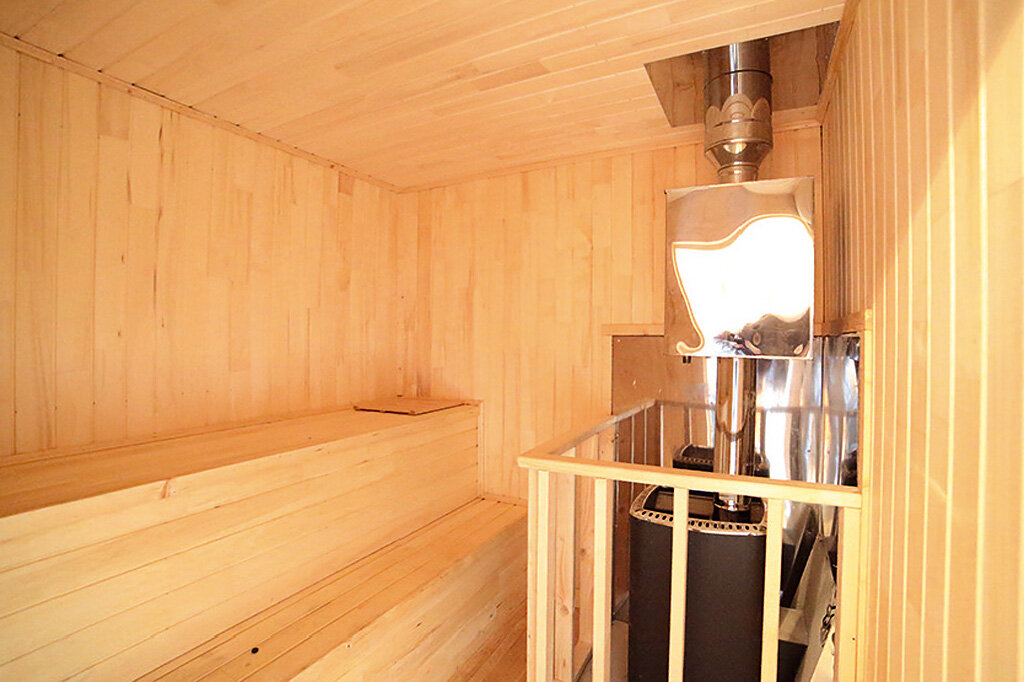 Чтобы вместить одновременно как минимум трёх человек, площадь помещения должна составлять не менее 4 кв. м, высота потолка – от 2,2 м. Полки размером 65х195 см позволяют принимать целебный пар сидя или лежа. При высоте более 60 см будет уместно оборудовать их ступенькой. Не стоит забывать о том, что пол, потолок, стены парного отделения обязательно должны быть гидроизолированы и утеплены нетоксичными материалами: керамзитом, минеральной ватой, фольгированными плёнками.