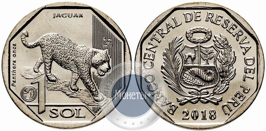 Вышла шестая монета серии «Вымирающая дикая природа Перу» - 1 соль 2018 Ягуар. На сегодняшний день в серию входят: