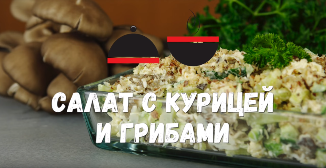 Салат из запеченной курицы и грибами "Вешенка". Грудинку я беру все время запеченную. Сорт грибов - только "Вешенка". Такой салат заменяет традиционный Оливье. Вам стоит его попробовать! Дочитай до конца и узнай еще 5 простых рецептов Салатов на Новый Год Что нам понадобится: Подробный рецепт: Укладываем грудку на фольгу, солим Заворачиваем и отправляем на 20-30 минут в духовку при 200°С Нарезаем грибы, лук и обжариваем на масле, солим Как только лук и грибы покроются золотистой коркой убираем с плиты Разделываем руками мясо Нарезаем огурец, терем яйцо Добавляем ко всему майонез и перемешиваем Перекладываем в формочку Дробим грецкий орех Посыпаем поверх салата Готово! Приятного Аппетита! Также вам может понравится: • Салаты на Новый Год. 5 простых рецептов