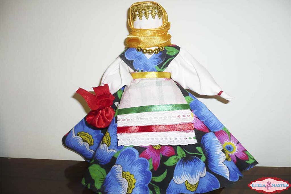 Берегиню в древности наделяли огромной силой. Считалось, что она оберегает дом и хозяйство от тёмных сил, болезней, дурного глаза. В разных областях этот оберег не только мастерили и одевали по-разному, но и давали разные рекомендации. Одни считали, что Берегинюшку надо размещать на видном месте, чтобы она встречала у входа и не пускала злые силы в дом. Другие прятали оберег в укромное место, считая, что эту куклу не должен видеть посторонний. Мы с вами сделаем Берегиню-подарок, с пожеланиями добра, радости, благополучия и счастья. Берегиня относится к самым крупным куклам-столбушкам. В основе её столбик (скрутка) из ткани или другого материала. Может быть даже берёзовое полешко. Основу куклы – столбушку мы будем выполнять по всем правилам: Необходимые материалы для обережной куклы: Мы взяли для куклы новые ткани, но если хозяйка делает оберег для своей семьи, лучше взять кусочки одежды, которую носили члены семьи, а для скрутки кусок старого постельного белья. Как сделать славянскую