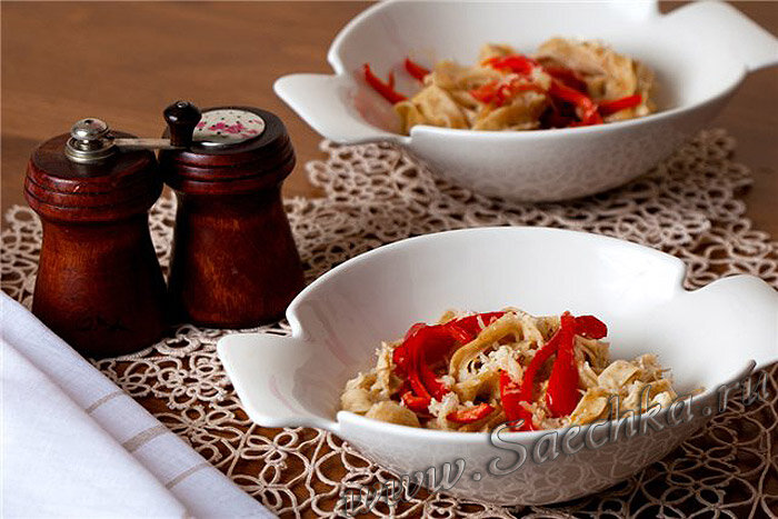 - Я подаю из с небольшим количеством масла, красным болгарским перцем (предварительно обжаренный в масле) и посыпаю сыром пармезан. Очень вкусно!