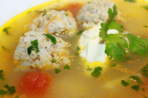 Готовим самый вкусный суп с тефтелями! Обязательно попробуйте суп по этому рецепту, вы будите приятно удивлены, ведь этим рецептом вы удивите любого ценителя кулинарных изысков, а так же им очень легко накормить большую семью! Для приготовления Супа с тефтелями Вам понадобится: - Фарш - 0,5 кг - Несколько картофелин среднего размера - рис примерно 1 не большая жменька - 1 яйцо - 1 морковь - 1 луковица среднего размера - соль - перец черный молотый - зелень - сметана Для того, что бы суп получился вкуснее, возьмите несколько сортов мяса. Подойдет свинина, говядина, баранина, курица, минимум два. 1.На блендере или в мясорубке перемелите мясо в фарш. Натрите на терке морковь. Нарежьте мелко луковицу и зелень (петрушку, укроп). Соедините все в миске, посолите, поперчите. Добавьте 1яйцо. Тчательно промойте в нескольких водах рис. Добавьте в фарш. Хорошо вымесите массу. Если фарш получился суховатым, добавьте немного теплой воды и снова вымесите его. Скатайте крупные, примерно размером с