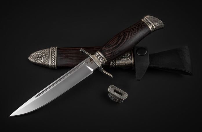Финки НКВД давно популярны не только среди коллекционеров, но и среди охотников, так как им очень нравятся формы этого ножа. К тому же, у этого ножа богатая история, которую можно изучать очень долго и постоянно находится новые интересные факты. Обычную Финку НКВД сейчас купить очень просто, а вот разборную довольно непросто найти. Но в интернет магазине Медведь такие Финки стали выпускать все чаще, использую разные виды металла для клинка и для рукояти. Посмотреть разборные и обычные Финки НКВД можно по ссылке: http://medved-knife.ru/finki-nkvd/ Финка НКВД от компании Медведь очень легко разбирается, клинок представляет из себя цельную детали с длинным хвостовиком, на конце которого сделана резьба. А самое главное, что собирается она также легко, все детали хорошо и плотно подогнаны. На финку можно поставить гарду с упором или без него, в зависимости от того, для чего она вам будет нужна в данный момент. Разборная Финка НКВД имеет следующие параметры: