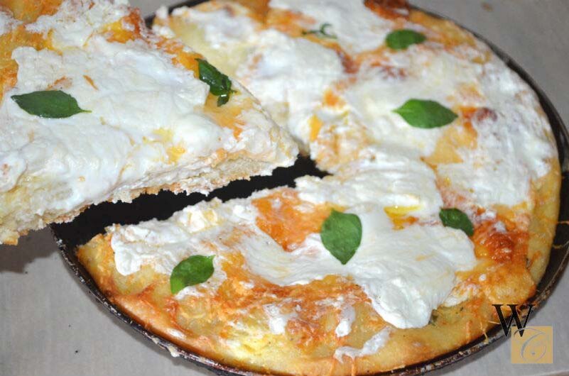 Большинство людей привыкло есть пиццу, приготовленную с помидорами и томатным соусом. Однако, очень вкусно можно приготовить так называемую белую пиццу без этих продуктов. Соус для белой пиццы готовят на майонезе, сметане либо смеси этих продуктов с обязательным добавлением чеснока. Ингредиенты Для приготовления белой пиццы потребуется: Пошаговое приготовление 1. Подогреть воду до 35°С. Добавить в неё сахар. Всыпать дрожжи и оставить при комнатной температуре на 5–6 минут. 2. Если есть мука для пиццы, добавить в неё соль и всыпать в воду с дрожжами, постепенно подсыпая остальную муку, замесить тесто. Если в наличии есть только обычная мука, то использовать можно только её. Для облегчения процесса вымешивания теста руки нужно смазать маслом. 3. Оставить тесто на один час.