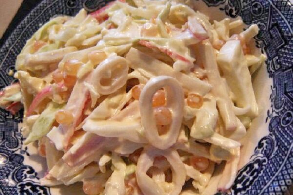 Простой салат с крабовыми палочками и кальмарами "Морячок"