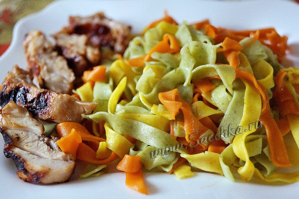 Тестораскатку хотела давно, основная идея была готовить цветную лапшу и вермишель, которую очень любит внук. Ну и, естественно, готовить свои домашние пельмени. Домашняя лапша по вкусу не сравнится с магазинной, быстро готовится, не слипается. Ингредиенты: Основное тесто для лапши: Зелёная лапша: Красная лапша: Жёлтая лапша: Как приготовить: P.S.: Мое новое приобретение - машинка оправдала все мои ожидания, процесс увлекательный не только для меня, но и для внука, он с удовольствием крутил колечки.