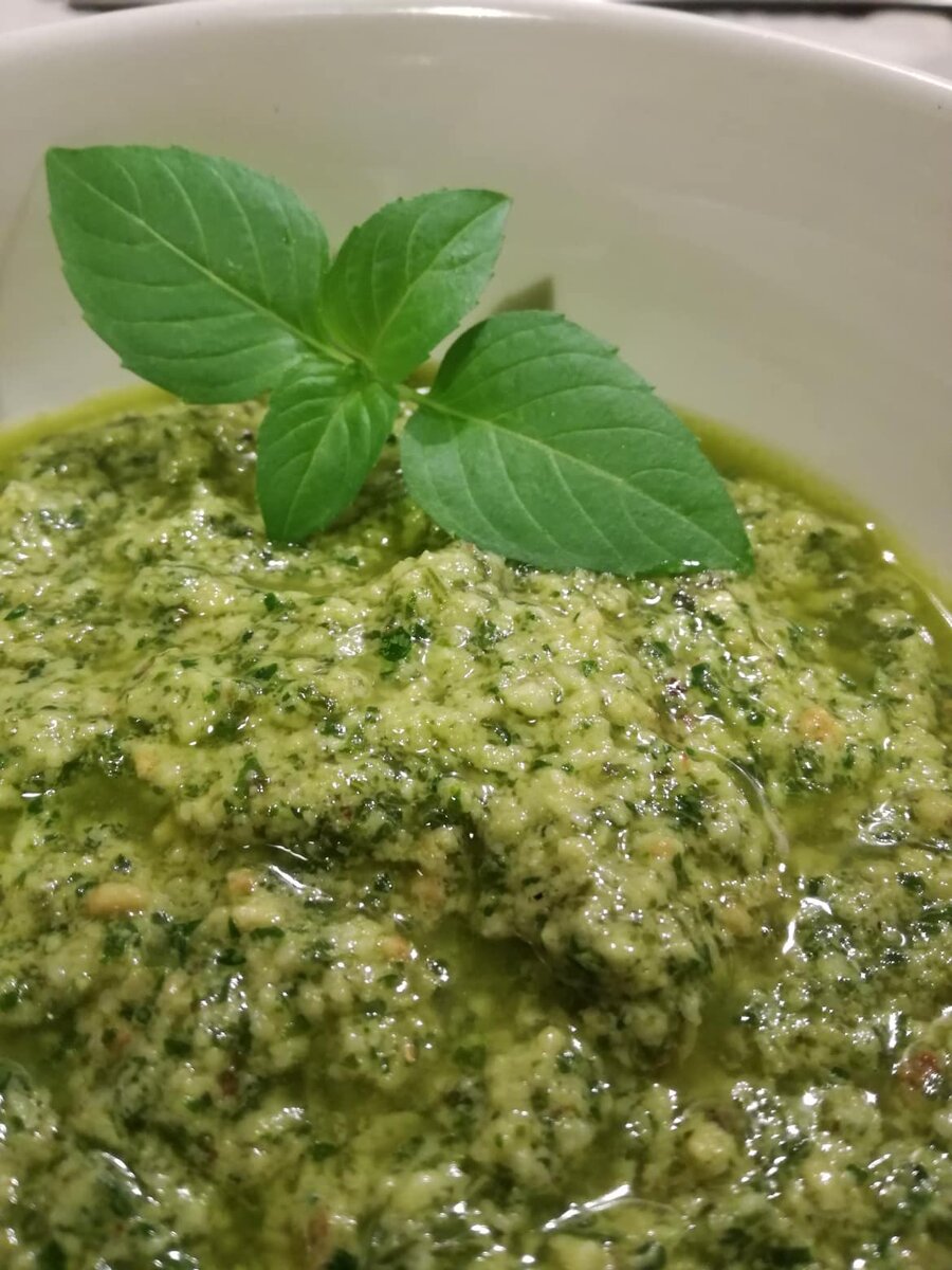 На нашем балконе растет большой куст базилика, благо погодные условия позволяют)) Очень удобно, готовишь, выскочил на балкончик, отщипнул базилика, и вуаля-последний штрих почти к любому блюду. В этот раз муж решил куст подровнять и подрезать и получилось достаточно много базилика, из которого нужно было что-то срочно приготовить. Мы не долго ломали голову над тем, куда же его деть и решили сделать соус "Песто". Так как готовили первый раз, мой муж ответственно подошел к процессу, нашел на просторах интернета рецепт от настоящего итальянца (внес что-то своё как обычно:) т.к. в оригинальном рецепте в соус кладутся кедровые орешки, а мы положили фундук и арахис) и мы приступили)) Я в этот раз выступала больше в роли фотографа и дегустатора. Должна признать, конечный результат превзошел все наши ожидания)). Чтобы вы понимали насколько: блендер почти блестел, остатки соуса мы собирали хлебом, чтобы ни капельки не пропало))) Итак, поехали.. Нам понадобится: 40 г базилика 1 зубчик чеснока