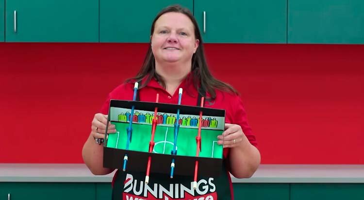 Сделайте из простой коробки настоящее футбольное мини-поле и устраивайте с друзьями мировые чемпионаты по футболу в любом месте. Необходимые материалы: Много болтать не будем, только самое важное. Для создания настольного футбола нам понадобятся следующие материалы: 1. Коробка (для нашего поля подойдет коробка из под обуви) 2. Акриловые краски (4 разных цвета) 3. Кисточки для рисования. 4. 4-ре палочки 5. Карандаш 6. Линейка 7. Прищепки. 8. Шарик для настольного тенниса. 9. Скотч. Итак, все необходимое для того чтобы сделать настольный футбол у нас уже есть, а поэтому приступаем к работе. Игра будет веселой! Как сделать настольный футбол. 1. Вырезаем ворота. 2. Окрашиваем в разные цвета палочки, на которые в дальнейшем будем крепить футболистов (прищепки). 3. Окрашиваем в красный и синие цвета наших футболистов, чтобы у них появились свои футбольные болельщики. В данном видео команды маленькие — по 3 прищепки в коробке, но если у вас коробка большего размера, то и игроков должно бы
