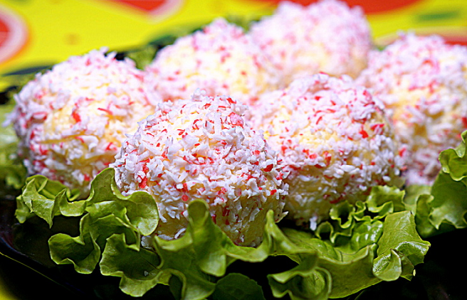 Закуска "Рафаэлло" из крабовых палочек - подойдет на Новый Год