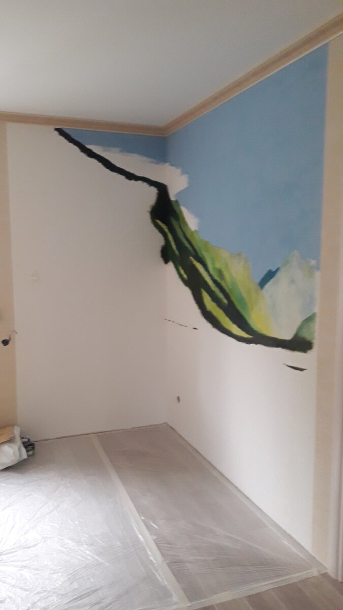 Алтайские горы Роспись стены, коттедж в п. "Серебряный бор", 2 эт., угловая стена, размер стены высота 270см, длина 140см и 225см, масло, тема живописи "Горы Алтая". @artevgen_art #роспись #росписьстен #настеннаяроспись #екатеринбург #ванная #гостиная #комната #детская #росписьпола #росписьпотолка #росписьбытовойтехники #росписьмебели #artevgenart #painting #wallpainting #mural #Ekaterinburg #bathroom #livingroom #children #floorpainting #ceilingpainting #homeappliancepainting #furniturepainting
