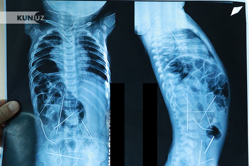 Ўшанда, Республика шошилинч тиббий ёрдам илмий марказига келтирилган бола тезкорлик билан жарроҳлик столига ётқизилганди. Марказдаги, Болалар жарроҳлик бўлими томонидан барча игналар танада турлича жойлашгани, яъни - чақалоқнинг йўғон ичак қисмида, сийдик қопи, кўкрак қафасида, боланинг бўйин қисмида, умуртқа поғонасида, юрак остида аниқлангач, бўлим мудири, профессор Акилов жарроҳлик амалиёти ўтказишга киришган эди. Жорий йилнинг 17 январь куни чақалоқ операция қилинди. 9 соат давом этган операцияда 10 нафарга яқин шифокор иштирок этди ва боланинг танасидан 11 дона игна чиқариб олинди.
