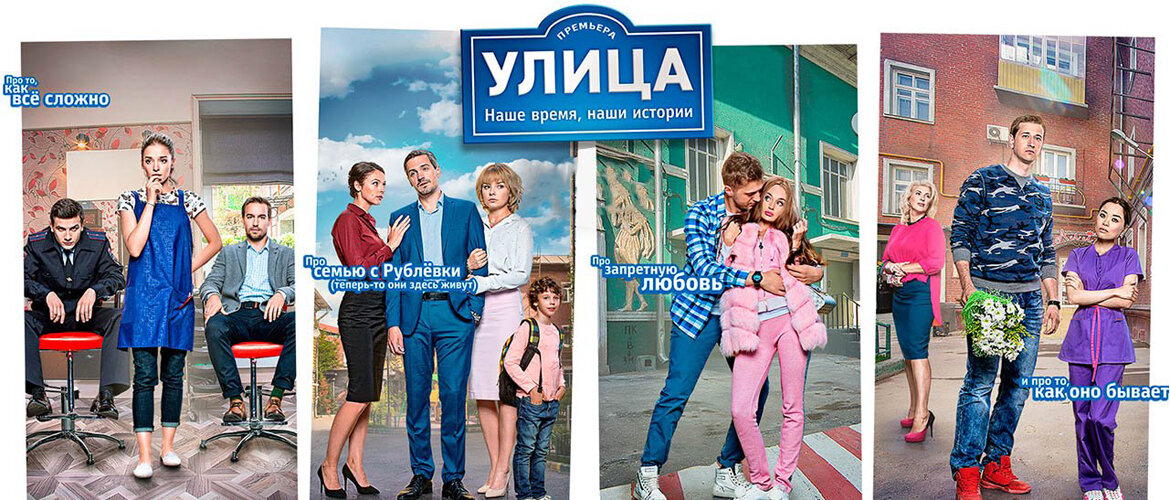 Всем привет!Сегодня я решила порадовать вас своей подборкой с телеканала,который я смотрю уже достаточно долго. Поехали! 1.Улица История простых людей,которые видя на одной улицы сталкиваются с разными ситуациями и проблемами.Тут живет и семья,которой пришлось переехать на улицу с Рублевки,и фитнес-тренеры,девчонки из салона красоты,полицейские и обычные подростки-школьники,которые испытывают первые трудности в общении с друг другом и проблемами,касающимися школы. 2.Ольга Сериал о жизни женщины Ольги,которая сталкивается с кучей проблем:ее дочь-подросток беременна,отец пьет и вытворяет черти что,сестра со своими проблемами в общении с мужиками,молодым парнем,который влюбляется в нее.И все это пытается разрулить наша Ольга. 3.Интерны Действие сериала происходит в больнице,где доктору Андрею Быкову подсовывают новых интернов,пришедших получать опыт работы с больными.Но доктор Быков не намерен их терпеть,на пути их обучения их ждет невероятно много козней,проблем и приколов от их начальн