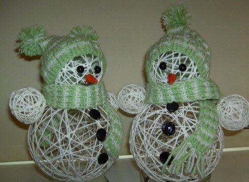 Всем огромный привет. Сегодня поделюсь одной полезной статьей, как сделать снеговика из ниток. Поехали. Нам понадобится: · нитки для вязания; · клей ПВА; · надувные шарики; · ножницы; · два теннисный мячика; · красный колпачок; · карандаш; · бумага или картон. Начинаем наше искусство. 1. Надуйте первый шарик размером с грейпфрут, второй меньше, чтобы они отличались друг от друга. Надуйте два шарика, размером с теннисный мячик – это будут руки снеговика. 2. Берем миску или тарелку, налейте клей ПВА. Возьмете вязальные нитки и погружайте в емкость. Делайте не спеша и старайтесь утопить в клею. 3. Делайте снеговика. Возьмите большой шар, который вы заранее подготовили, и обмотать нитью с клеем. Старайтесь все делать по кругу и не спешить. 4. Когда доделали большой шар, приступайте к остальным. 5. Оставьте чтобы они высохли. Положите в теплое место. И подальше от кота, а то он подумает, что игрушки делаете, и начнет с ними играть. 6. Прошло время и изделия высохли. Удалить шарики из ни