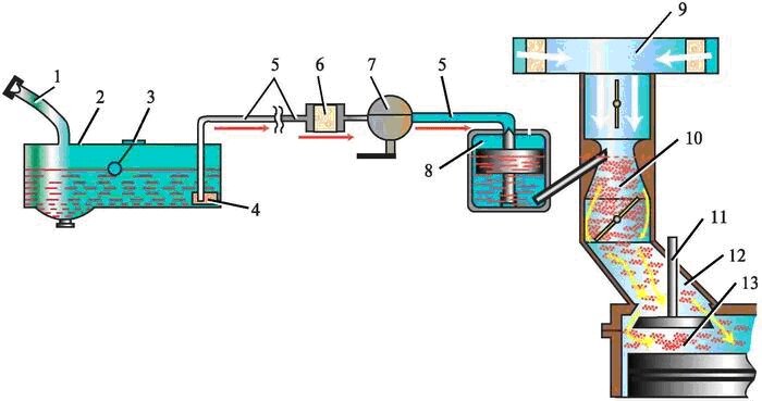 Прежде чем прочитать прошу - поставить лайк, написать комментарий и сделать репост. Тема: Устройство работы приводов в системе питания. 15 серия Смеси образования горючей смеси. Существует процессы смеси образования заключается в измельчение частиц топлива с дальнейшим их использованием и смешиванием их с воздухом (карбюрация). Для обеспечения нормальной работы двигателя на различных режимах работы не обходимо чтобы карбюратор приготавливал горючею смесь определённого состава. В зависимости от концентрации топливо и воздуха в горючей смеси её подразделяют на пять видов: 1) Смесь нормальная - если на 1 кг топлива приходиться 15 кг воздуха. 2) Смесь обогащённая - если на 1 кг топлива приходиться от 15 до 13 кг воздуха. 3) Смесь богатая - если на 1 кг топлива приходиться меньше 13 кг воздуха. 4) Смесь обеднённая - если на 1 кг топлива приходиться больше 15 кг, но не более 17 кг воздуха. 5) Смесь бедная - если на 1 кг топлива приходиться больше 17 кг воздуха. Общее устройство