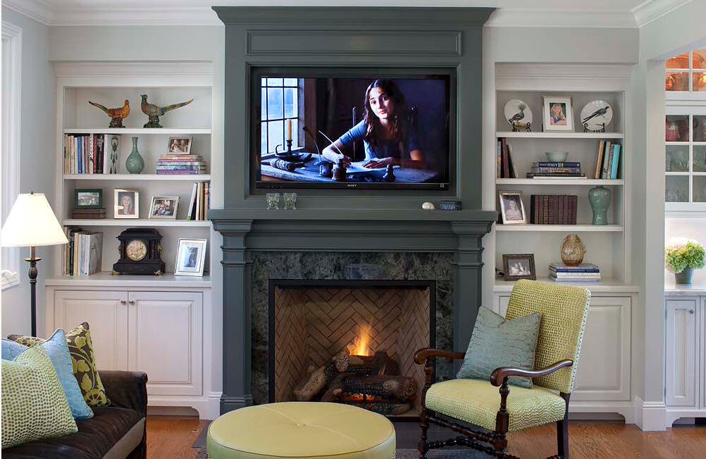 Если в гостиной есть ниши, то их можно стильно оформить с помощью полок. Конечно же, ширина полок должна соответствовать ширине ниши, а их вид и форма совпадать с остальным интерьером гостиной.