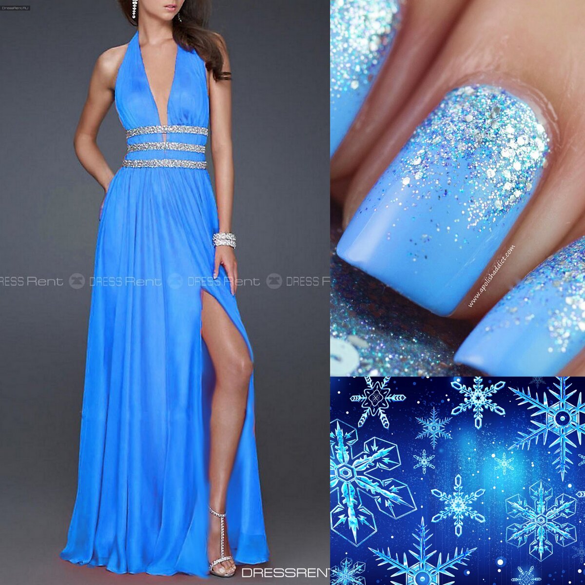 Если с прической можно справиться самостоятельно, то руки лучше доверить профессионалу. Голубой оттенок припорошен блестками у самого основания. Празднично и весело!