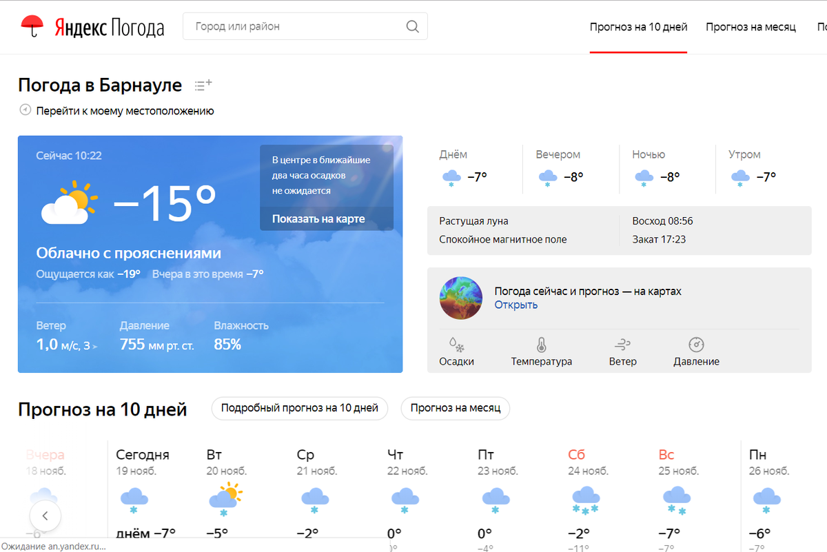 Pogoda.yandex.ru входит в десятку самых точных сайтов погоды в мире. Информацию о погоде для сайта предоставляет финская служба Foreca, которая занимается составлением прогноза по модели ECMWF. Ресурс составляет метеоданные для более 12 тысяч городов в 228 странах. Foreca также сотрудничает с Гугл, Микрософт, авиакомпаниями и другими организациями. Первый платный контент для мобильных устройств метеорологическая служба запустила в 1997 году. В Яндекс компания поставляет информацию о средней температуре по всей планете в режиме онлайн. Ресурс располагает удобным и интуитивно понятным интерфейсом, где можно ознакомиться с прогнозом погоды на ближайшие 10 суток.