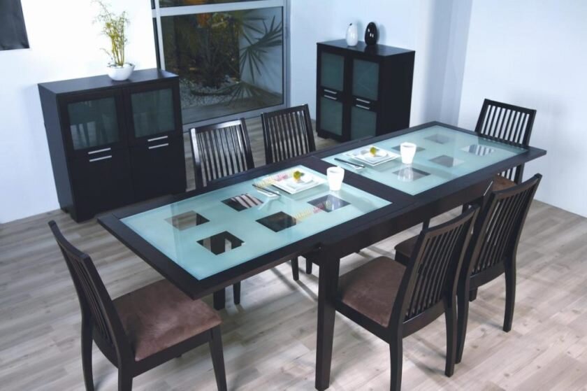 Стеклянные столы продолжают оставаться популярными, даже несмотря на то, что стали появляться в интерьерах соотечественников около 15 лет назад. Но и теперь такая мебель для кухни исчезает с витрин выставочных центров практически в первую очередь. Секрет такой популярности в том, что стеклянные столы для кухни хорошо вписываются как в стиль классик, так и пользующийся спросом Модерн. Если дизайнер достаточно опытный и не боится сломать установленные стереотипы, то такой стол вполне можно успешно разместить даже в интерьере кухни стиля Прованс. Данный стиль пользуется безумной популярностью в наше время, но многие отказываются от него только лишь потому, что стекло не совсем сочетается со средневековой провинциальной Францией. Стеклянные столы могут быть абсолютно разнообразны по форме. Наиболее популярны прямоугольные и квадратные столы, они хороши для размещения на небольшом пространстве. Если размеры кухни позволяют, можно поставить стеклянный стол круглой формы по центру помещени