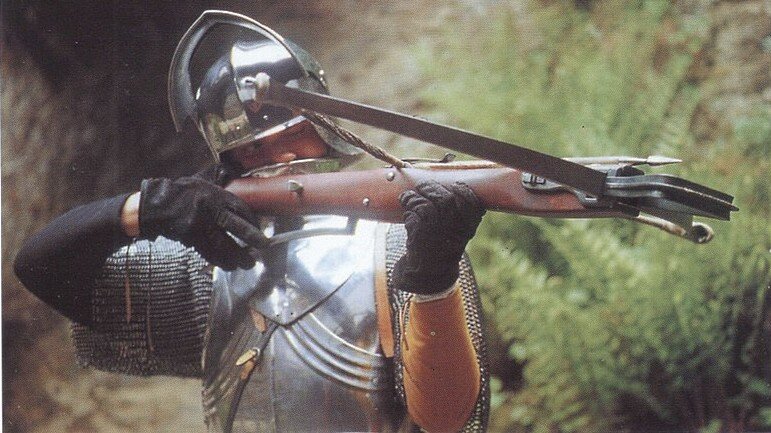 Для чего же нужен арбалет, если есть более простой и скорострельный лук, известный человеку еще с каменного века? Лучнику во время прицеливания необходимо удерживать тетиву в натянутом состоянии, что снижает точность стрельбы и значительно повышает требования к подготовке стрелка. Механизм арбалета позволяет удерживать натянутую тетиву и при этом проводить прицеливание. Поэтому стрелять из арбалета, можно было обучить практически любого, даже мало-мальски подготовленный крестьянин мог ссадить с коня рыцаря, закованного в дорогие доспехи.