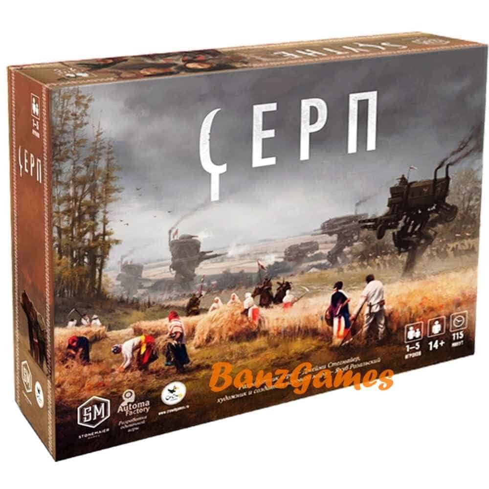 НАСТОЛЬНАЯ ИГРА СЕРП Игровой процесс, позволяющий охватить до пяти человек, переносит участников в альтернативный поствоенный мир 20-х годов прошлого столетия. В центре карты восточной Европы размещается Фабрика, которая в течение войны поставляла враждующим сторонам гигантские механические машины, или Мехов (по конверсии в мирный период помогают на полях, лесах и добыче полезных ископаемых). Земли вокруг этой Фактории, да и сама она лакомый кусочек для каждой державы, представителем которой и становится игрок: ему надлежит вырвать успех у других, и умело переманить фортуну на свою сторону. Каждая фракция обладает 6 жетонами звезд, и когда кто-то из игроков разместит последнюю из своих на счетчике славы (за те или иные достижения по ходу игры: воздвижение строений, военная мощь, популярность в народе, победы в столкновениях, и прочее), партия завершится, а победителем станет лишь тот, кто наберет больше победных очков, с учетом множителя на треке популярности. Помимо освоения и за