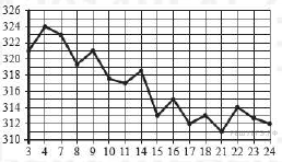 На рисунке жирными точками показана цена никеля на момент закрытая биржевых торгов во все рабочие дни с 3 по 24 октября 2002 года. По горизонтали указываются числа месяца, по вертикали — цена тонны никеля в долларах США. Для наглядности жирные точки на рисунке соединены линией. Определите по рисунку наименьшую цену никеля на момент закрытия торгов в период с 4 по 16 октября (в долларах США за тонну).
