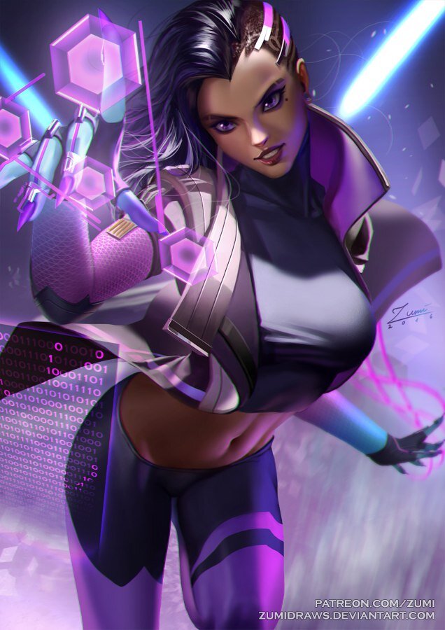 "Взломать можно всё...и всех." Сомбра (Sombra, дословно - "тень") - настоящее имя героини неизвестно. Родилась в Мексике. Сомбра сирота со времен войны "Восстания машин". Тем не менее, даже после утраты семьи, хакерские таланты помогали её держаться на плаву и зарабатывать на "хлеб". Тогда то Сомбру и заметила банда "Лос Муертос", взявшая нашу героиню под своё крыло. Жертвами взломов становились влиятельные компании, богачи и политики. Рос масштаб операций. Но сильные мира сего не дремлют, как говорится. Кто - то начал копать под Сомбру. Стерев все данные о себе и выбрав новое имя, вживив кибернетические импланты, героиня продолжила хакерскую деятельность, параллельно узнавая про этих самых "любопытствующих". Оными оказалась террористическая организация "Коготь", которая и завербовала Сомбру. Больше минибиографий и артов - https://vk.com/sexygirlsarts Художник - http://zumidraws.deviantart.com/