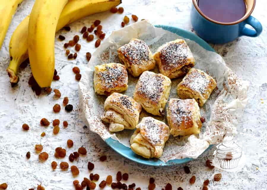 Не знаете, как испечь слойки из готового слоеного теста? Возьмите на заметку этот рецепт. Пошаговая инструкция приготовления с фото далее. Сегодня готовим вкусные и ароматные слойки на основе готового теста. Творожная начинка с добавлением изюма и банана удивит вас своим необычным вкусом. Сверху для блеска обязательно смажьте слойки желтком, а также присыпьте маком для красоты. Способ формирования слоек можно использовать любой на ваш выбор, я выбрала наиболее простой — рулетики. К горячему чаю ваша выпечка станет лучшим дополнением, а главное, что готовить их быстро и просто. Нам понадобится: Предварительно нагрейте духовой шкаф. Заготовки поместите на противень, застеленный куском пергамента, загрузите в печь. Примерное время выпекание составляет 20 минут при нагреве 180 градусом. Слойки из готового слоеного теста готовы! ПОСЛЕДОВАТЕЛЬНОСТЬ ПРИГОТОВЛЕНИЯ первую очередь достаньте тесто (полуфабрикат) из морозильного отсека, чтобы оно разморозилось. 1. Если у вас мягкий
