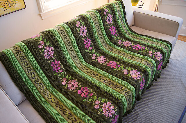 Тунисское или афганское вязание – это техника, используемая для вязания плотного трикотажного полотна с помощью специального крючка. Изделие, выполненное такой технике получается тугим, почти не тянущимся и не деформирующимся после стирки. Готовая вещь прекрасно держит форму и не вытягивается при носке. Изготавливая вещи на холодную погоду, рукодельницы часто прибегают к дополнительному утеплению изделия подкладочными тканями. Однако вещи, связанные в технике тунисского вязания не требуют утепления, благодаря чему такой тип вязания чрезвычайно популярен при вязании теплых свитеров, пальто, кардиганов. Особенно хороши пледы, если к тунисскому вязанию добавить небольшие вышитые фрагменты.