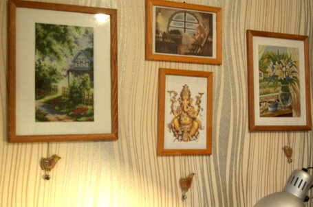 Мы прожили в съемном доме около года, привыкали к новому месту, планировали, как и что мы будем делать в своем доме. Мы хотели все как следует продумать и не спешили делать ремонт, да и денег достаточных не было. Чтобы было легче ждать, я снова вышивала. На этот раз уже без особого намерения. Просто делала красивые вещи для нашего дома, так как кроме этого больше делать для него было нечего.