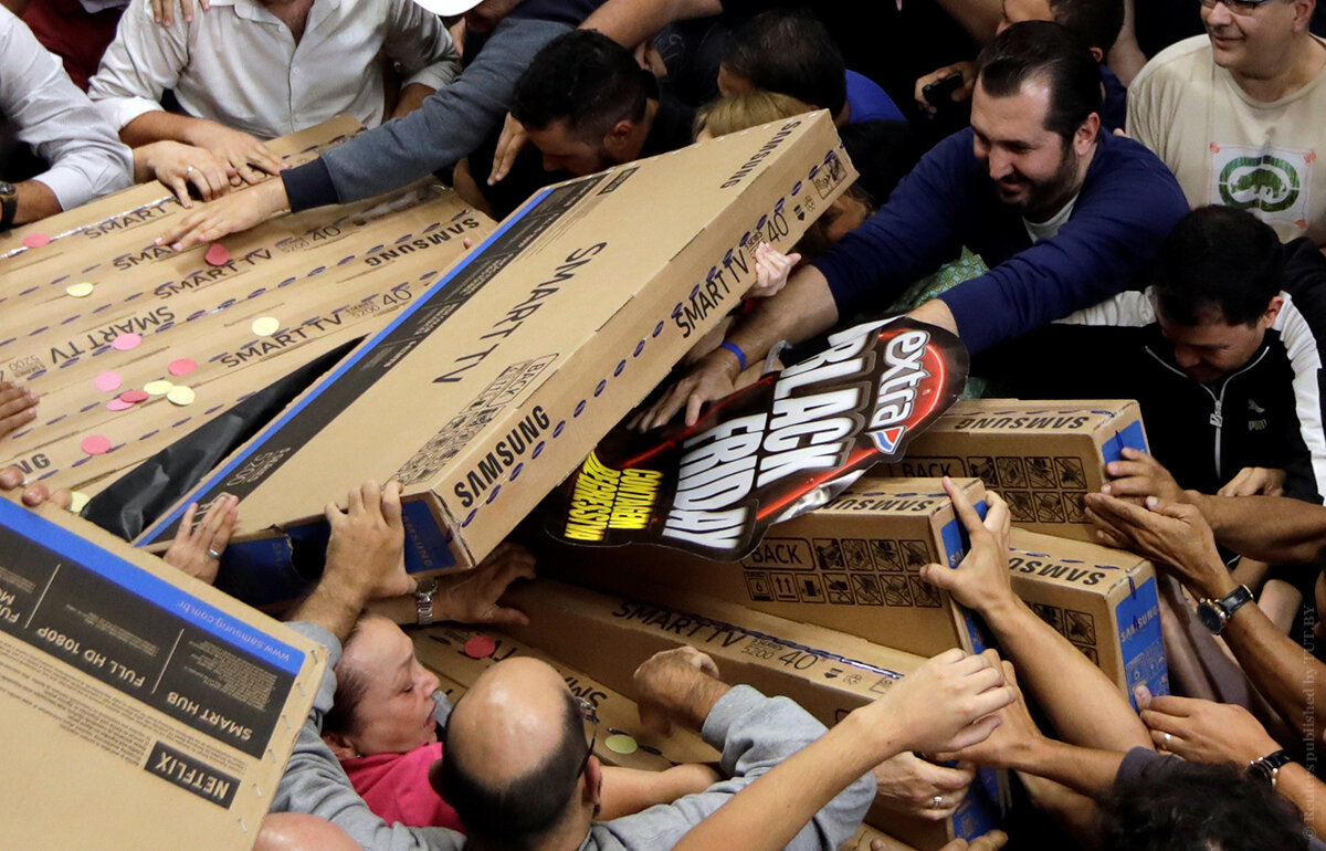 Есть теория, что название «Черная пятница» идёт с тех времён, когда бухгалтерию вели на бумаге. Расходы писались красными чернилами, а доходы чёрными. Отталкиваясь от этого, в пятницу после Дня Благодарения бухгалтерские тетрадки были заполнены чёрными чернилами т.к. люди покупали много продуктов и подарков на данный праздник! В чём же выгода для продавцов? Для покупателей выгода понятна - покупки с огромными скидками. А какой смысл продавать товары по закупочной цене продавцам? Ответ прост - в этот день продавцы избавляются от товара, который скопился в огромных количествах на их складах! Не для кого не секрет, что за новыми технологиями не угнаться и всё новые и новые модели телевизоров и всяких других гаджетов ждут своей очереди на прилавках взамен старым. К тому же, покупатели обращают своё внимание на товары, которые магазин выставляет с завышенными наценками и в порыве страсти хватают и эти товары. В итоге магазин имеет выгоды - это популярность, разгрузка складов, обновление а