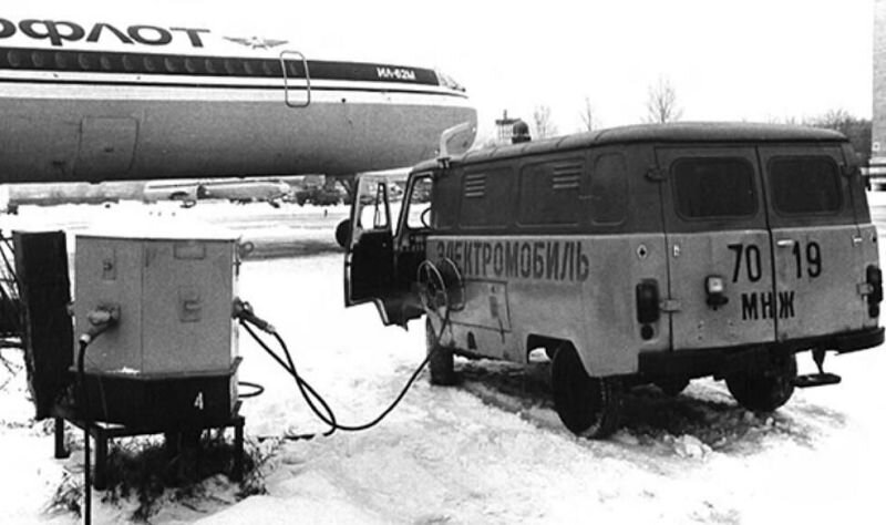 Началось все в 1959-ом году, когда группа энтузиастов Ульяновского автомобильного завода на базе автомобиля УАЗ-450 “Буханка” разработала электромобиль на тяговых свинцовых аккумуляторах. Получилось все отчасти кустарно, для равномерного распределения веса два крупных АКБ расположили по обоим бортам в специальных ящиках. Эти машины обслуживали аэропорт в тестовом режиме. У получившихся экземпляров была масса недостатков, крупный и тяжелый электромотор, свисающие под днищем автомобиля ящики АКБ, для зарядки требовались станции с постоянным током. Проехать на одном заряде машина могла совсем ничего, что в целом не проблема в аэропорту, но проблема для использования таких автомобилей в городе.