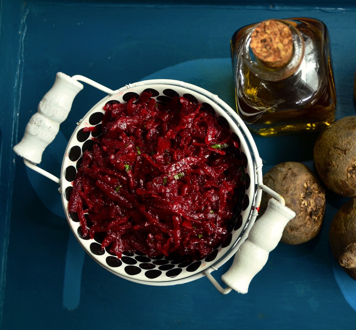 Масло растительное - 100 мл. Свеклу моем и очищаем, после натираем на спец.тёрке или нарезаем тонкой соломкой.Свеклу выкладываем в миску и добавляем мелко нарезанный чеснок.