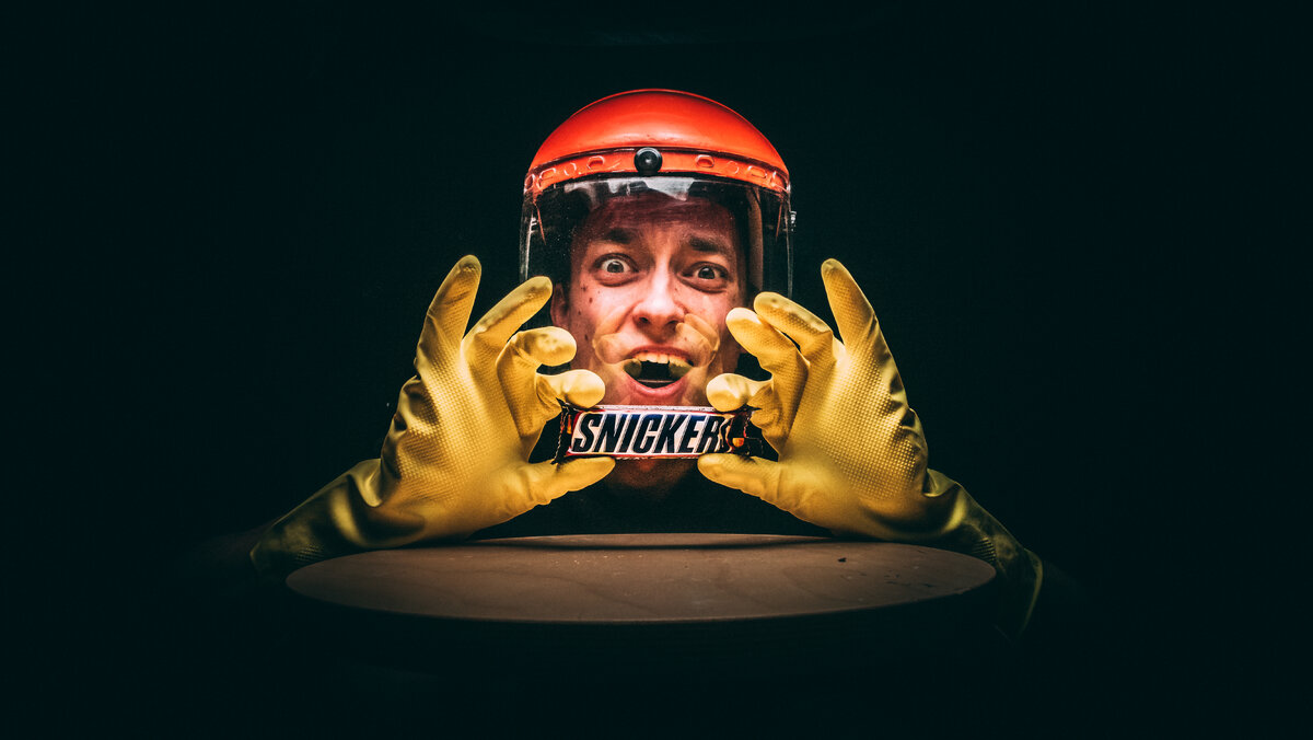 Чтобы было интереснее, попутно расскажу вам 5 самых интересных фактов о популярнейшем батончике в мире... ФАКТ №1: Сникерс назвали в честь лошади. ФАКТ №2: В одном батончике находится ровно 16 орешков. А вот тут мне и взбрело в голову расчленить шоколадку и посчитать арахис среди карамели и нуги. Самое первое в экспериментах с едой - это предварительно взять второй образец и съесть его. Иначе вы просто сожрете экспериментальную модель и отложите эксперимент до лучших времен, которые скорее всего произойдут "Никогда" Поэтому я скушал Сникерс и спокойно начал резать другой. В итоге идея с разрезанием накрылась карамельным тазом. Все вышло очень криво и разглядеть, сколько действительно орехов в батончике, мне не удалось. Второй гениальной идеей стало поджигание. Во первых- это не требует вмешательства моих рук внутрь Сникерса. Во вторых- поджигать я люблю. Вот пара кадров сего жертвоприношения карамельным богам. Далее я аккуратненько расковырял батончик деревянными палочками, которым