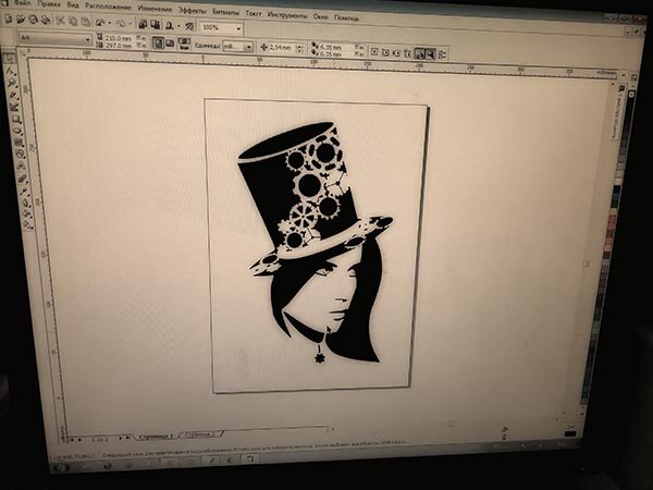 Хватит переплачивать за дорогущие трафареты. Пора сделать самому. Смотри как это делается, легко и просто! В этом обучающем уроке я покажу как сделать непромокаемый трафарет своими руками. Для начала нам необходимо найти изображение. Я буду делать барельеф в стиле стимпанк, поэтому выбрал вот такую даму. Подготавливаем его в графической программе "Photoshop" или "Corel Draw". Подрисовываем перемычки, убираем лишние элементы. Что именно убрать, вы увидите внимательно разглядев свой рисунок. Просто вообразите что должно закраситься на поверхности, а что нет. После того, как вы подредактировали наш будущий трафарет, необходимо его распечатать на принтере. Печатать желательно на бумаге по толще. Следующим этапом необходимо скотчем оклеить все поверхность листа. Если у Вас бумага тонкая, значит проклейте скотчем с двух сторон. После наклейки скотча, нужно черные элементы вырезать канцелярским, или модельным ножом. Модельным ножом трафарет вырезается более качественно и быстрее. После все