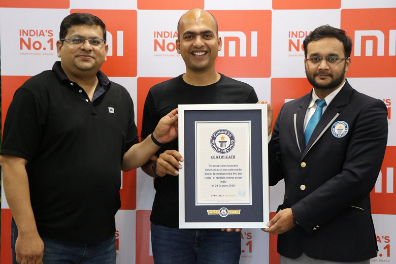 Компания Xiaomi открыла более 500 магазинов Mi Store в Индии, благодаря которым компания попала в Книгу рекордов Гиннесса. Магазины Xiaomi располагаются в 14 из 29 штатов Индии, все они выполнены в одном ключе. Магазины Xiaomi возглавили рынок Индии, опередив Samsung и остальных конкурентов. Компания Xiaomi так же заявила о том, что за год она планирует увеличить количество своих магазинов в Индии. К концу 2019 года Xiaomi планирует открыть суммарно 5000 магазинов в Индии и создать более 15 000 новых рабочих мест.