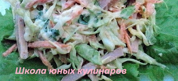 Когда приходит теплое время года, организм требует более легкой пищи. Идеальным вариантом таковой являются салаты. Если включить собственную фантазию, то можно приготовить салаты из самых различных продуктов. Чем больше свежей зелени в них будет задействовано, тем большее количество витаминов и других полезных веществ получит организм. Далее детально опишем рецепт салата с сосисками и корейской морковью. Ингредиенты: сосиски – 2 штуки; майонез – столовая ложка с горкой; корейская морковь – 150-200 грамм; листья салата – 5-7 штук; зелень петрушки – небольшой пучок; свежая капуста – небольшой кочан; соль и приправы – по желанию. 6. Выкладываем салат с сосисками и корейской морковью на порционные тарелки, украшенные листьями салата. Все. Простой салат с сосисками и корейской морковкой готов
