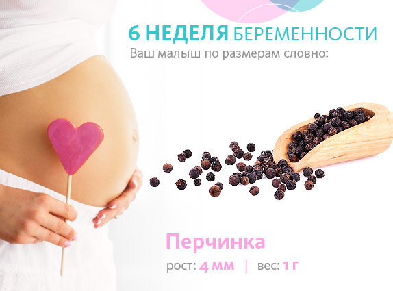 Шестая неделя беременности – время важных изменений как в строении зародыша, так и в материнском организме. Гормональные преобразования приводят к эмоциональной нестабильности, проявляющейся в раздражительности, частой смене настроения и странных вкусовых пристрастиях. И хотя живота еще нет, близкие уже могут заподозрить беременность по необычному поведению женщины. На 6 неделе беременности эмбрион вырастает до 5 мм в длину, а плодное яйцо – до 25 мм. Все системы организма усложняются и совершенствуются, уже явно видны будущие глаза, ушки и носик, на крохотных ручках и ножках формируются пальчики, в зоне головного мозга нервная трубка значительно утолщена, а по своей длине она начинает давать множественные ответвления, формируя будущую нервную систему. Кожа приобретаем чувствительность, — в первую очередь в районе рта и внутренней поверхности бедер. Уже имеются зачатки половых органов, однако пол на УЗИ на этом сроке никто определить не сможет. Самый важный момент шестой недели берем