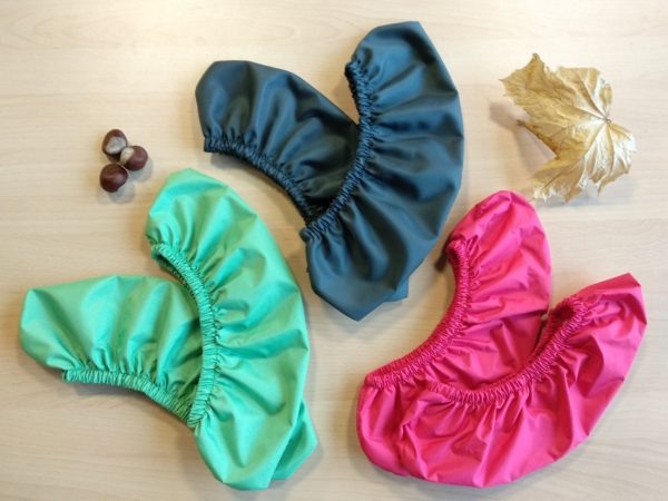 Они сшиты на нашем производстве в Москве, что существенно уменьшает их экологический след. Их плотная ткань не боится каблуков и долгого использования, их можно смело стирать в машинке, и даже сушить не придётся — они водонепроницаемы. Если бахилы износятся, вы можете отдать их на переработку в Собиратор