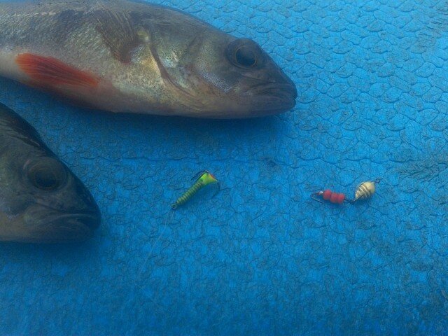 Вчера на рыбалке испытывал мормышку , где вместо подвески на крючке был крючок с бусинками . Эта приманка привязана нижней в тандеме , верхней был " чёртик - проволочка " . О " чёртике " - без вопросов , кислотный цвет работал нормально . А на мормышку с " бисерным крючком " полосатики клевали , но неудобства с мормышкой были . На мой взгляд , лучше верхней поставить просто один крючок с бисеринками , а внизу мормышку " зеркальце " с голым крючком !? Эта снасть более практичная . Для сравнения добавляю фото с " навороченной " приманкой ! Чем проще , тем лучше , - мой девиз ! Попробовал и " забраковал " с крючком вместо подвески !!! Однако , вполне хорошо оценил я мормышку " стрелка " , так же с бисером на цевье крючка ! Стоит эту снасть взять в рыбацкий арсенал ! Пробовал я так же тандем : " зергорец " и " нимфа " , тут без нареканий , однозначно ! Работат тандем на 100 % . Испытания проводил рядом с Рефтинской ТЭС . На месте рыбалки обширное пространство водоёма с наледью