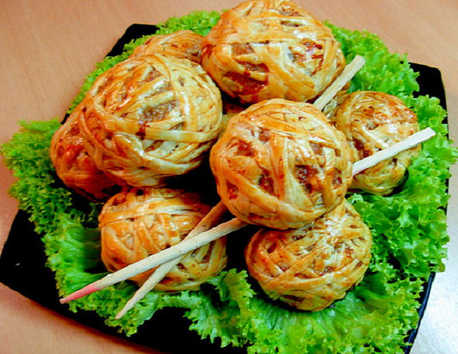 "Клубочки" с мясом - горячая закуска на праздничный стол