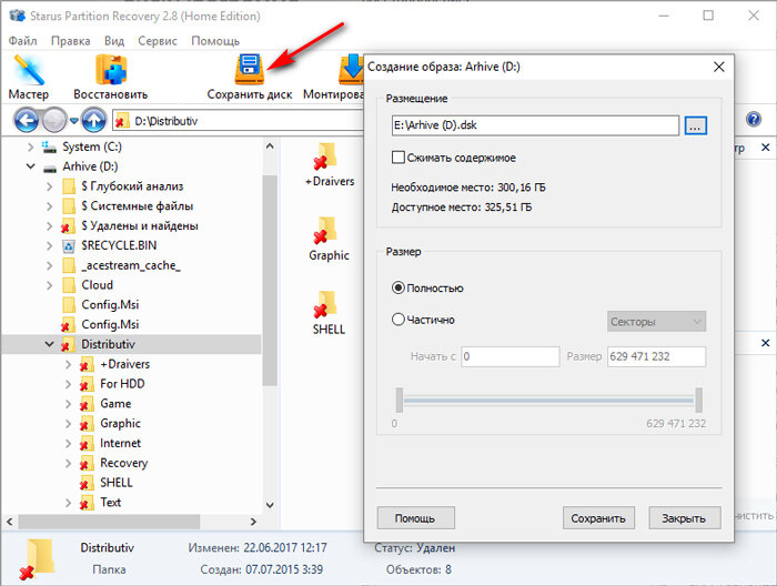 Точную копию диска вам поможет сделать инструмент Starus Partition Recovery.
