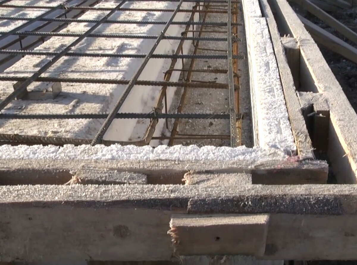 Если после заливки начинается резкое похолодание — над фундаментом сооружается тепляк. Если этого недостаточно — устанавливают тепловые пушки, которые защищают фундамент от замерзания. Бетон застывает правильно, набирает плановую прочность.