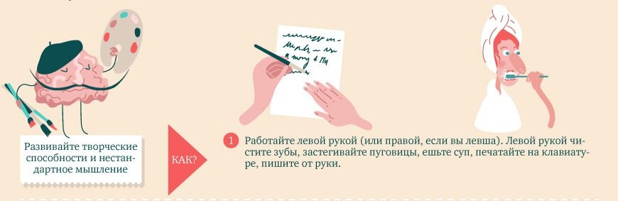 Суть упражнений в применении другой, непривычной руки состоит в том, чтобы создать новые нейронные связи между полушариями и укрепить старые (действие старое выполняется по-новому).