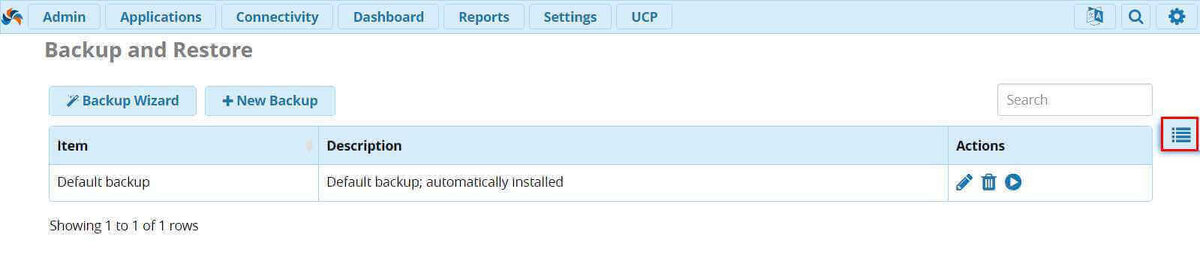 Итак, для того чтобы попасть в модуль Backup & Restore, с главной страницы, необходимо перейти по следующему пути Admin - > Backup & Restore. Перед вами откроется страница с текущими созданными бэкапами, а также бэкапами системы по умолчанию