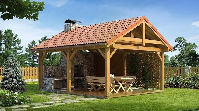 - Открытые. Это каркасное сооружение без окон и дверей. Пол также не является обязательной частью.