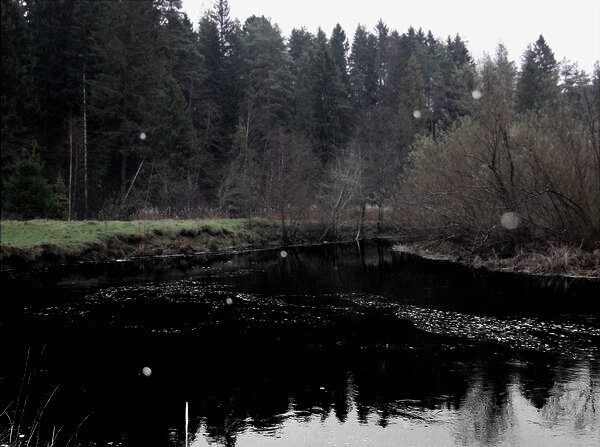 Солнечный свет сегодня с трудом пробивается на грешную землю. Серо-свинцовые облака проносятся над верхушками деревьев, а яростные порывы ветра пытаются разорвать их в клочья. Основной удар на себя принимают многолетние сосны, что только скрипят, шумят своими кронами и немного клонятся от ветра, но стоят непоколебимо! На берегу лесной реки, несмотря на то, что солнце взошло уже давно, царит полумрак. Оголенные ветки кустов и свинцовая чернота воды делают день серым, словно в черно-белом кино! И только спиннинг с ярко оранжевым бланком кажется здесь инородным пятном. Заканчивается третий час прогулки по лесной реке. Черные омуты и завалы из мертвых деревьев молчат, как и резина. Единственная, на сей миг, рыба выловлена на обычном прямике без всякого рельефа. Сработал один из пластиковых бойцов. На которые после этого и был сделан основной акцент. Продираюсь сквозь голые ветки кустов, так и норовящих стегнуть по лицу, и вываливаюсь на очередной прямик реки. Аккуратно упавшее дерево ст