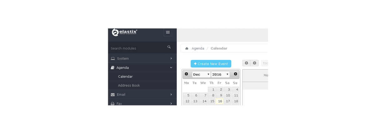 В данной статье мы рассмотрим работу такого функционала Elastix 4 как Agenda, и его сопутствующего модуля – Calendar. ОБЗОР Данный функционал находится в общем меню слева, и называется, как я уже упоминал выше – Agenda: Если кликнуть по нему, то откроется два модуля на выбор Calendar и Address Book: Начнем с обзора возможностей Calendar. НАСТРОЙКА И ИСПОЛЬЗОВАНИЕ CALENDAR Как видно на скриншоте ниже, это обычный календарь, но с не совсем обычным функционалом. После нажатия на кнопку + Create New Event, откроется следующее окно, которое можно увидеть на скриншоте ниже, вместе с примером настройки. По факту, это будет автоматический звонок указанному абоненту с подключением механизма TTS (Text to Speech) – то есть озвучивания текста голосом: Кроме того можно прислать напоминание участниками по email: Для завершения настройки необходимо кликнуть кнопку Save. После этого событие появится в вашем календаре и будет выделено указанным цветом. ЗАКЛЮЧЕНИЕ В заключение хочу сказать что скорее вс