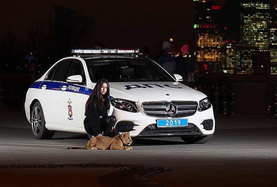 Дочь миллионера устроила фотосессию с живым львенком и машиной ДПС на Воробьевых горах
